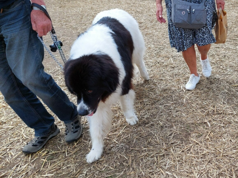 De haren bij de poten zijn anders dan de Newfoundlander. Ze zijn ook wat kleiner en hebben 2 kleuren