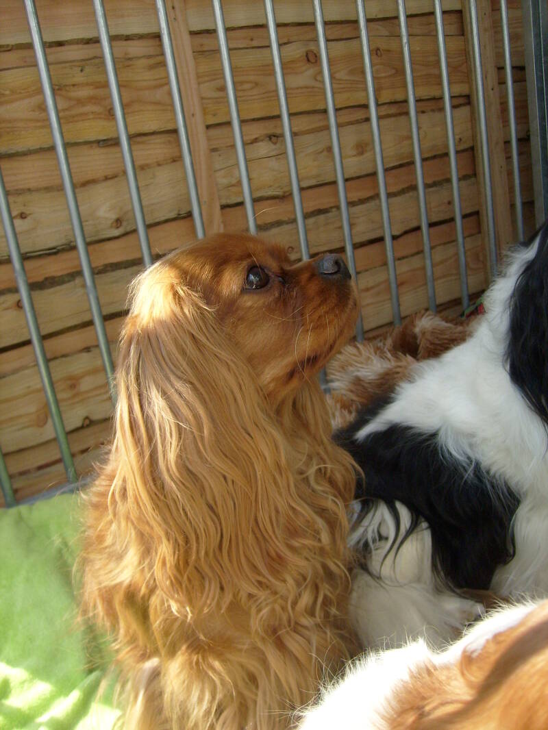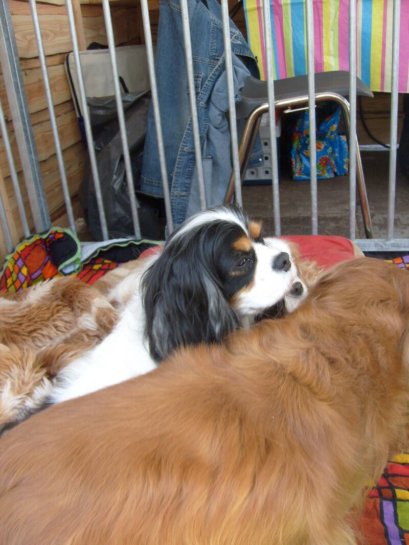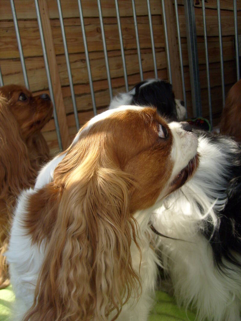 Gefokt voor: Ze staan al eeuwen op schilderijen afgebeeld. Er waren 2 koningen die helemaal weg waren van deze gezelschapshondjes en daar danken zij hun naam aan. Later kwamen ze naar Nederland toe en zijn ze gekruist met de Mopshondjes van Koning Willem III. Door de Mopshondjes kregen de dwergspaniëls een bredere kop en een plattere snuit. Ze werden geliefd en daardoor viel het oude ras weg, maar hield wel dezelfde naam. In 1926 werd het ras wat meer terug gefokt naar het ‘oude’ type dwergspaniël. Er waren vooral King Charles Spaniëls met platte neuzen. Maar de hondjes die wat langere neuzen hadden, werden verder gebruikt om mee te fokken. Rond 1928 werd er een nieuw rasstandaard opgesteld voor de Cavalier King Charles Spaniël. ‘Cavalier’ is ervoor geplakt om verwarring te voorkomen met de King Charles Spaniël (met de platte snuit). Helemaal in het begin was er een boek over hondenrassen, waar Toy Spaniëls in stonden, die onwijs veel leken op dit ras